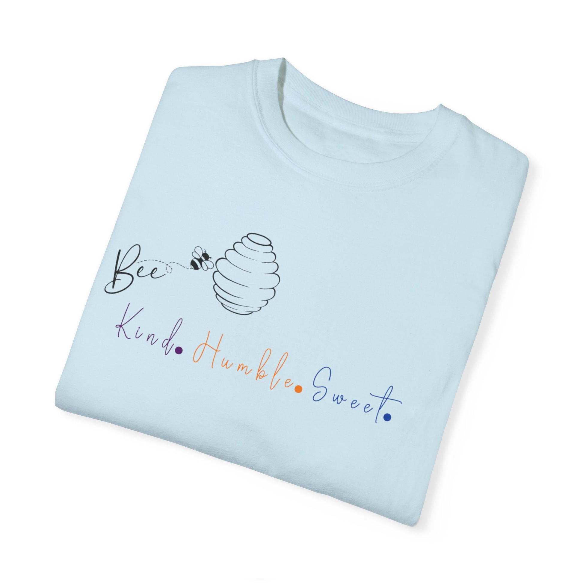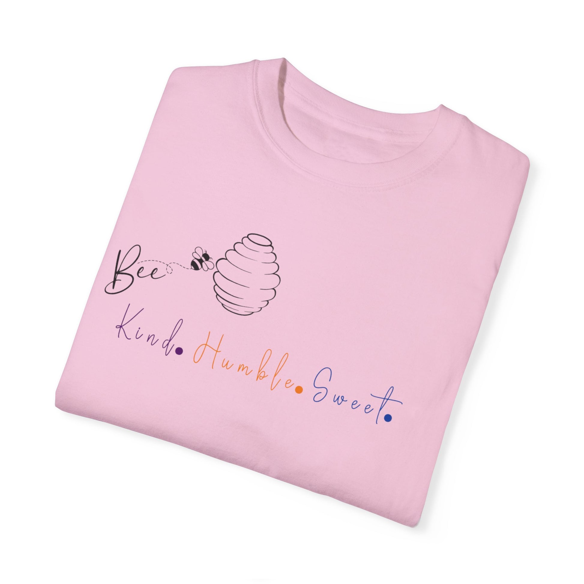 This adorable T-shirt features a bee and a hive with a simple message reminding us to be kind, humble, and sweet to others. It gives off a warm and friendly vibe, perfect for spreading positivity in everyday life. Ideal for adults looking for a comfortable and stylish tee to wear, especially relevant for Earth Day, World Bee Day, or just to promote kindness and positivity.