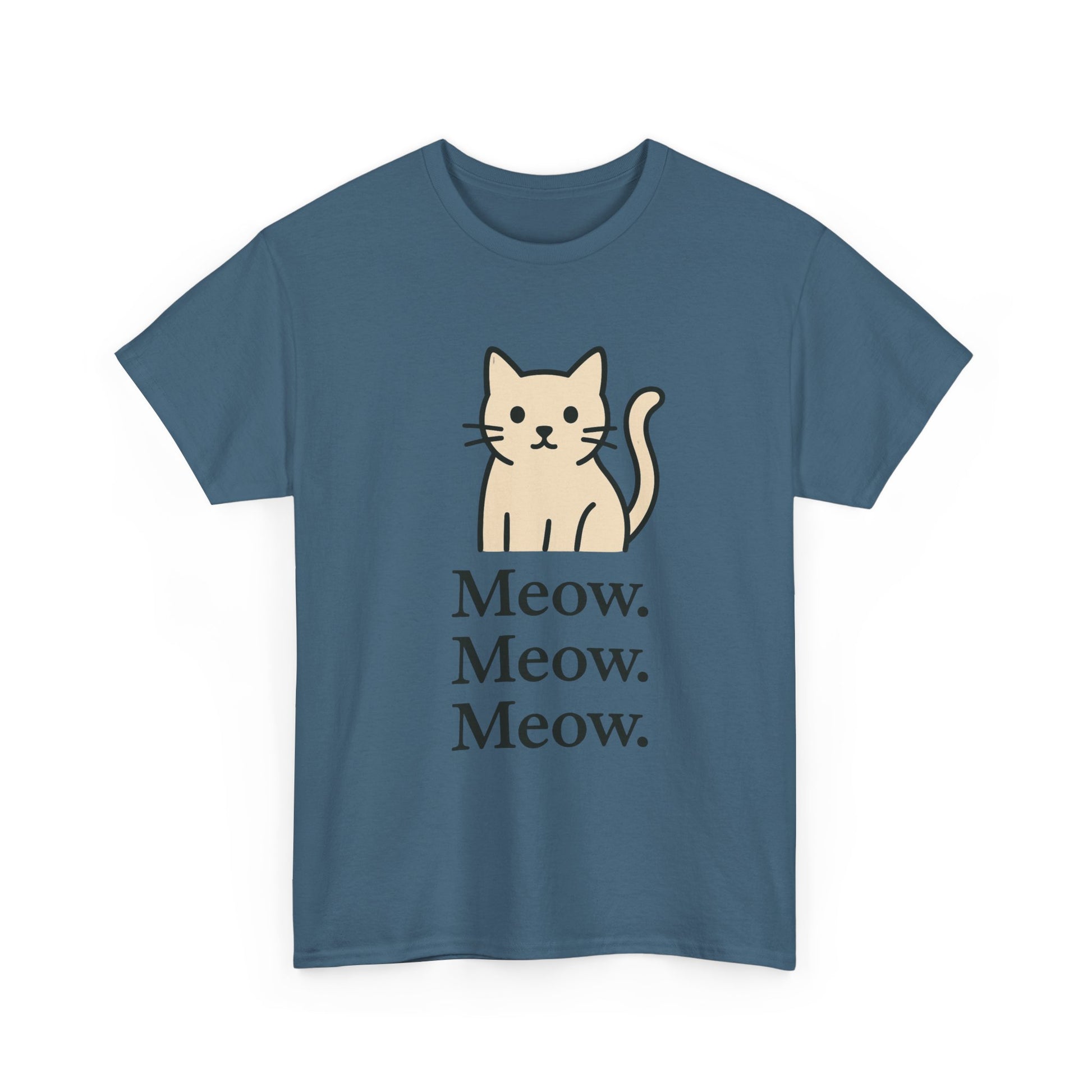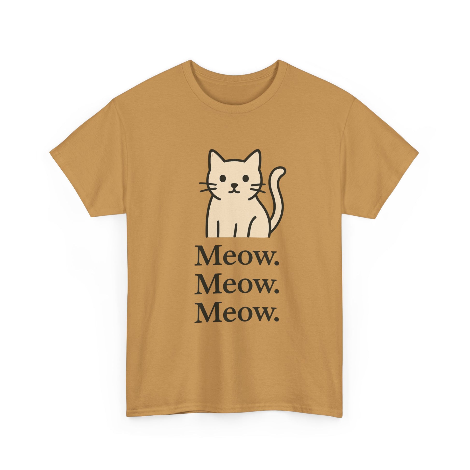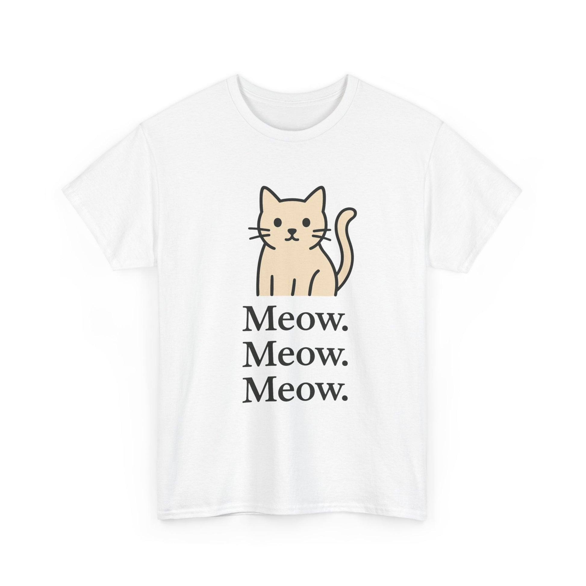 This Tee is definitely the 'Cat's Meow' with a simple minimalist cat design featuring 'Meow' repeated three times. Perfect for cat lovers looking for a unique and stylish tee to add to their wardrobe. Ideal for casual wear or as a statement piece during cat-related holidays and events.