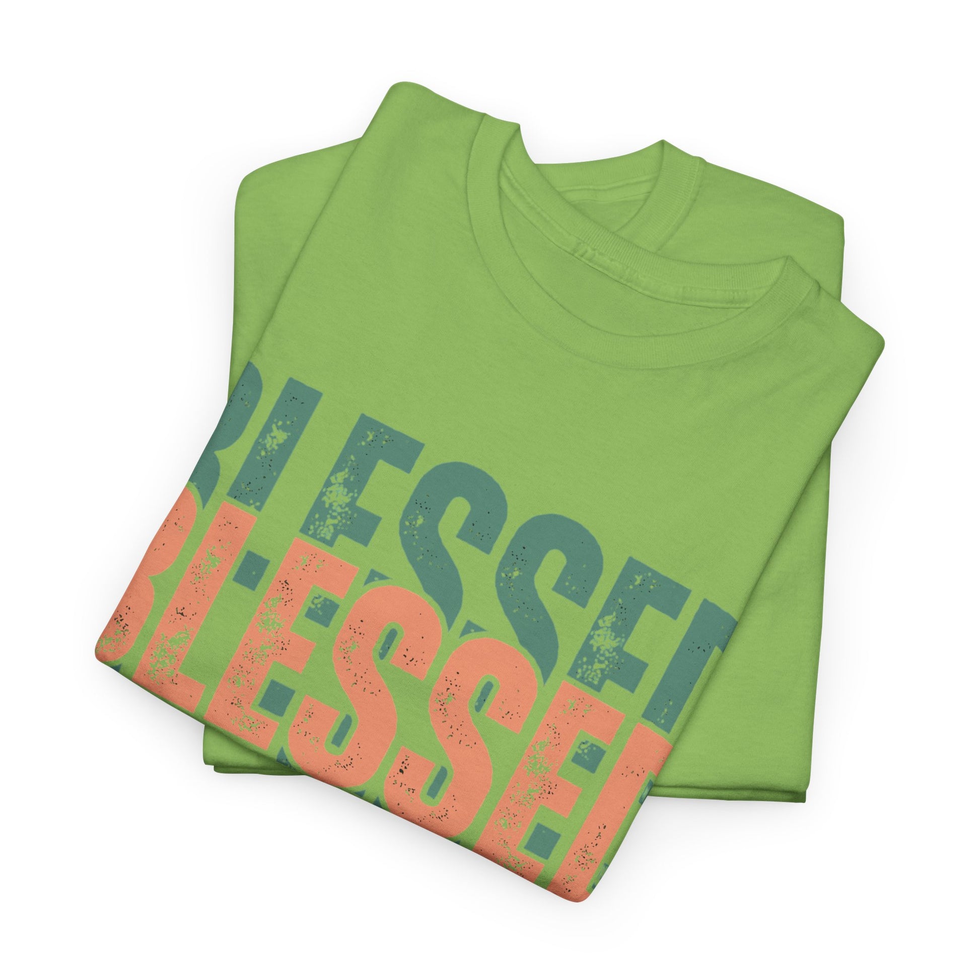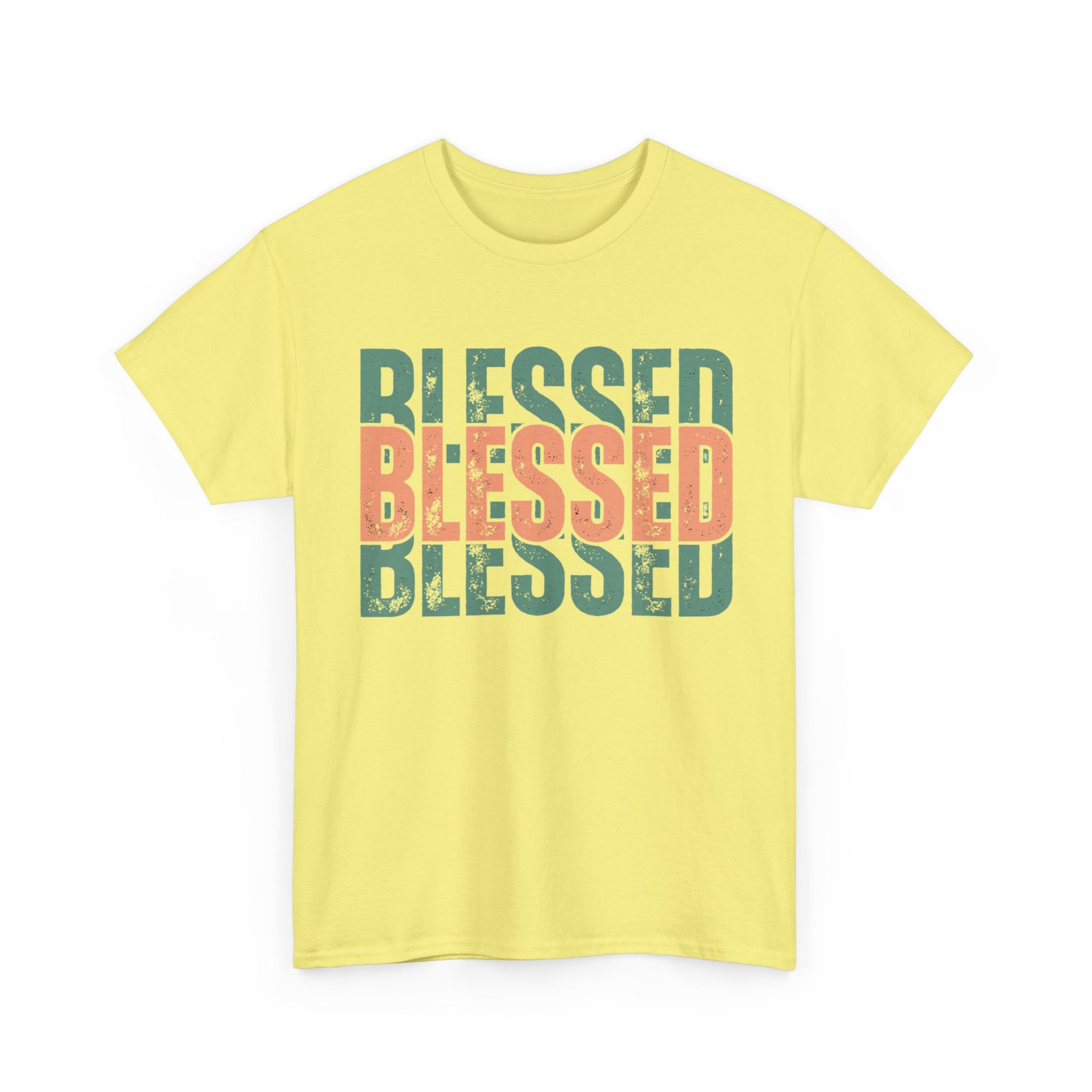 A funky Tee for Christians to rock, featuring colorful, stacked, distressed styled letters- 'BLESSED'. This Tee gives off a positive and vibrant vibe, perfect for casual wear or as a statement piece. Ideal for Christian holidays, church events, and everyday wear for believers.