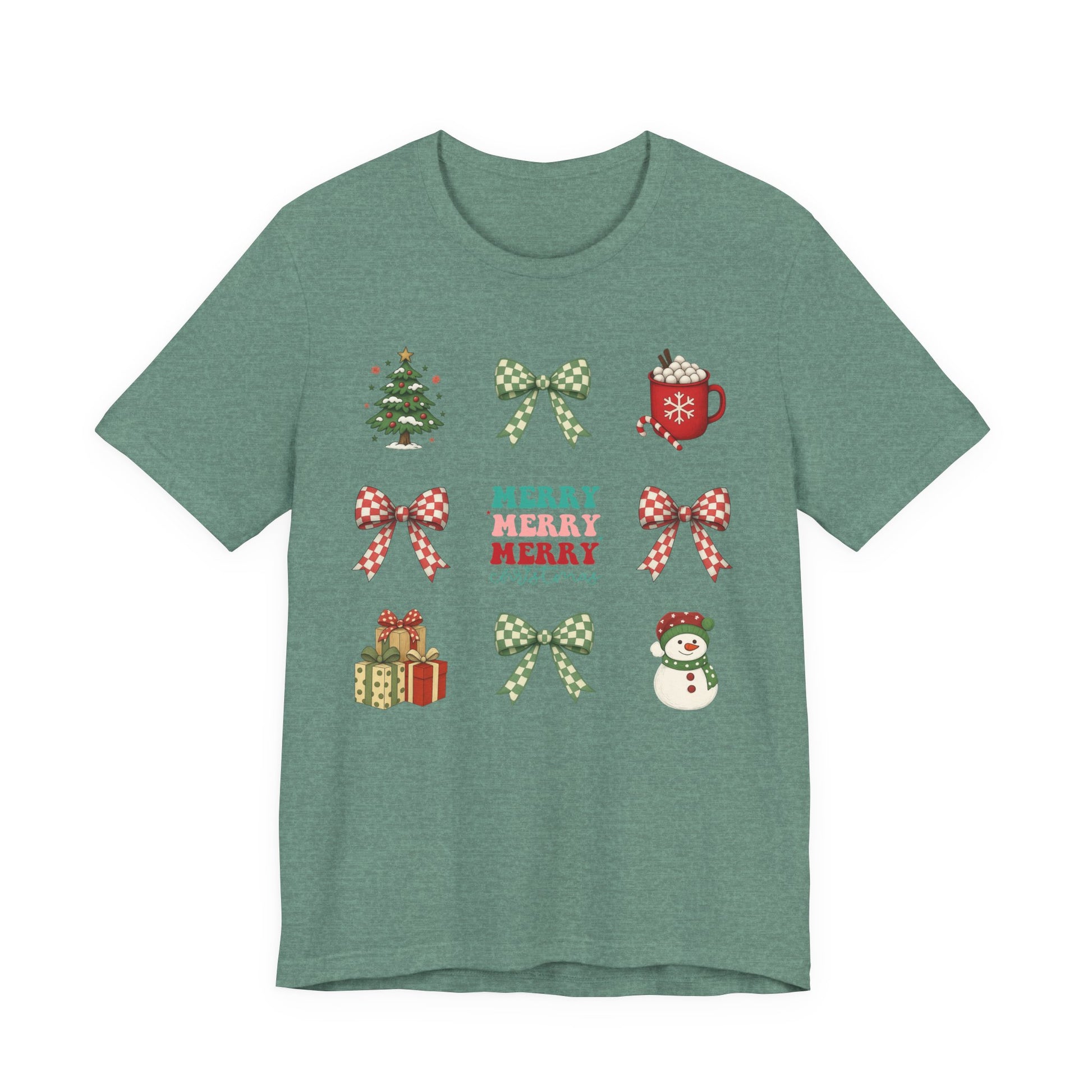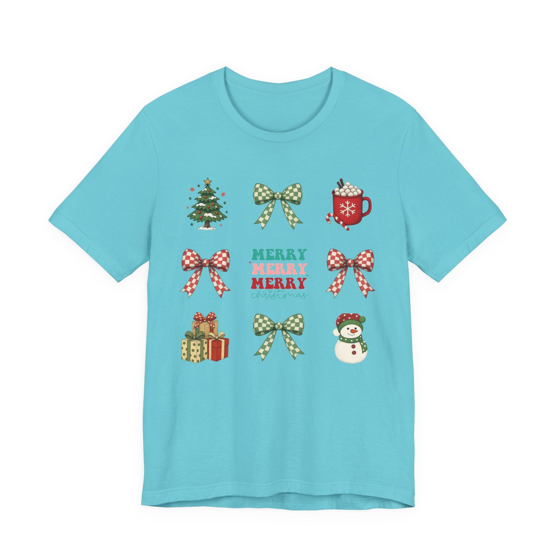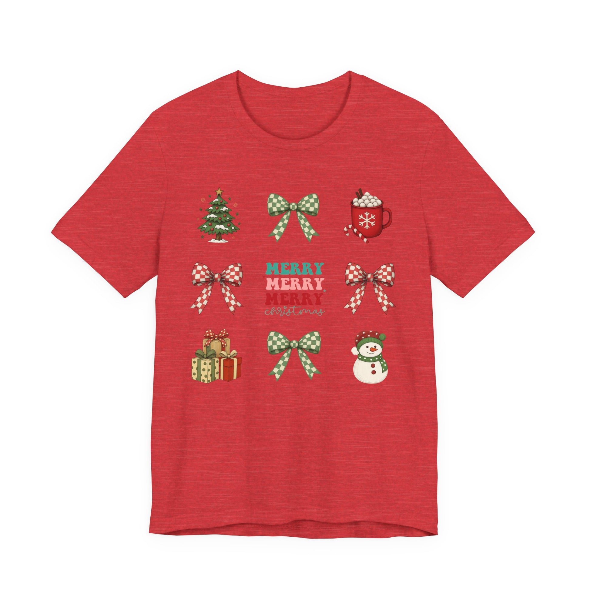 Spread holiday cheer with this festive tee featuring elements of Christmas in a cool box design. Perfect for casual and semi-formal settings, this tee is made with lightweight, breathable fabric that is easy to layer. Ideal for active and leisure wear, this tee is a must-have for the holiday season.