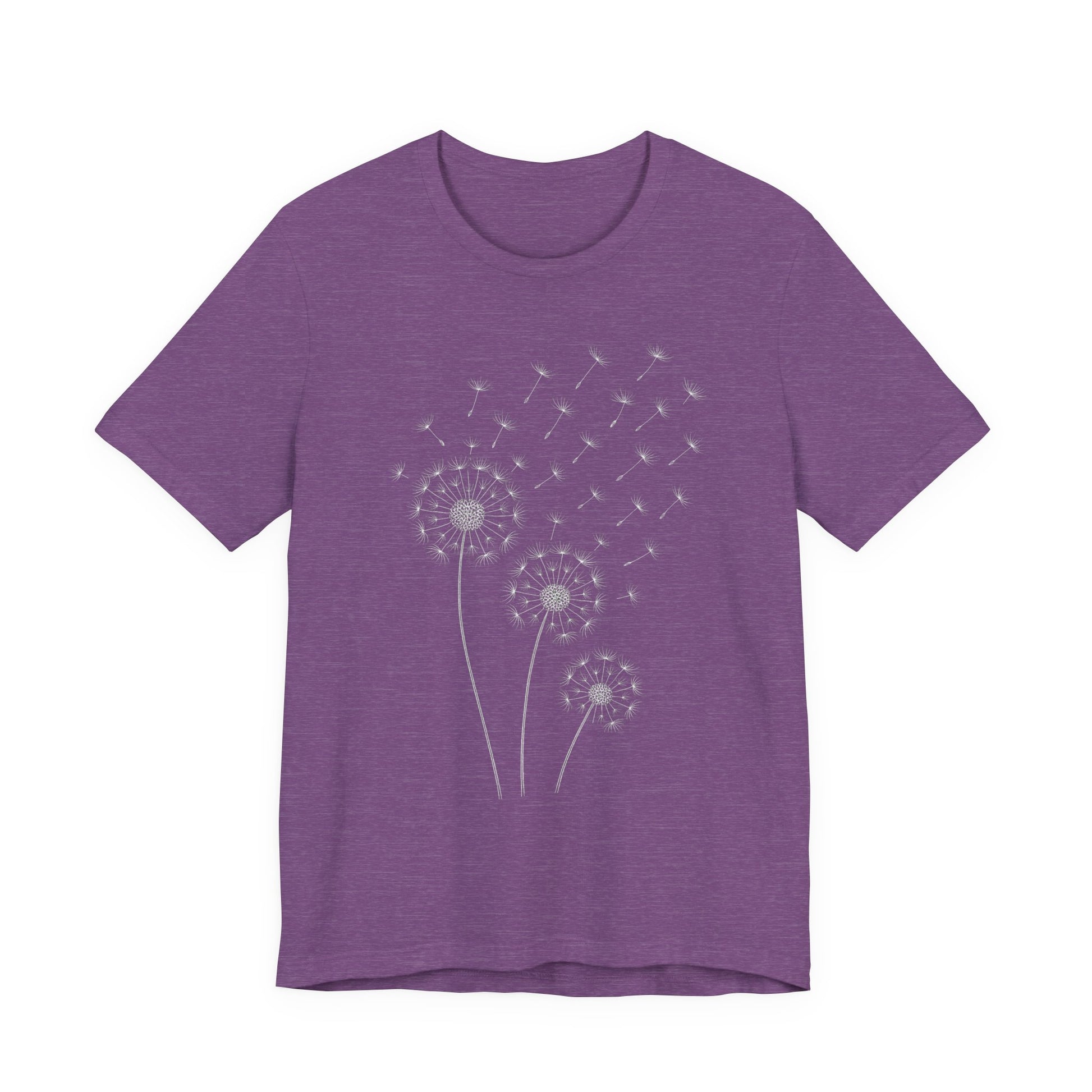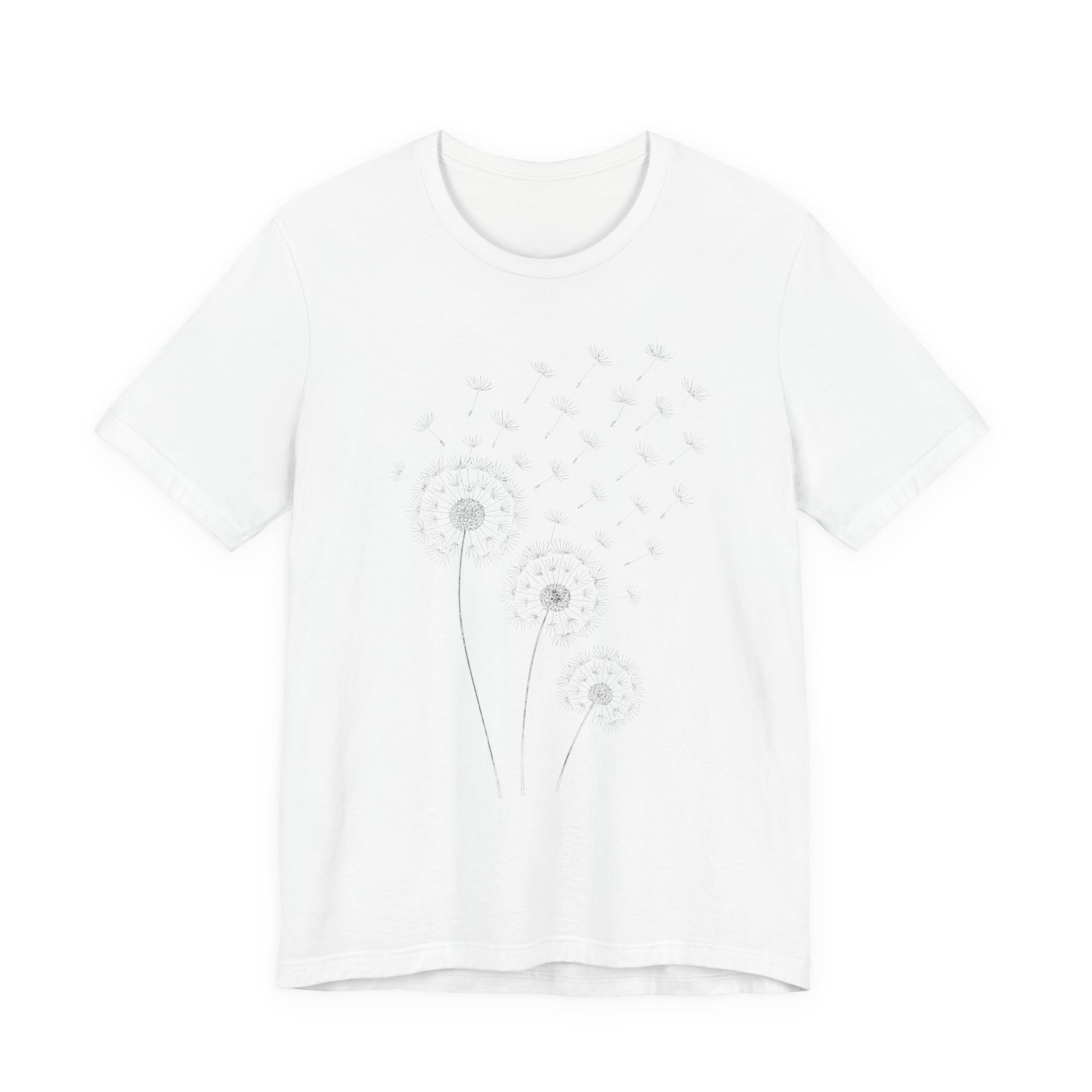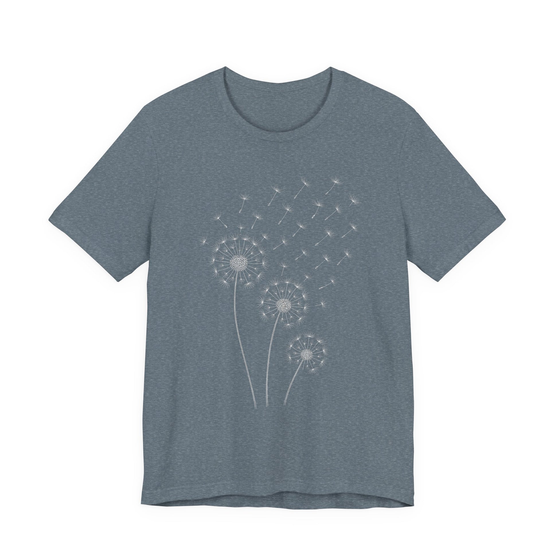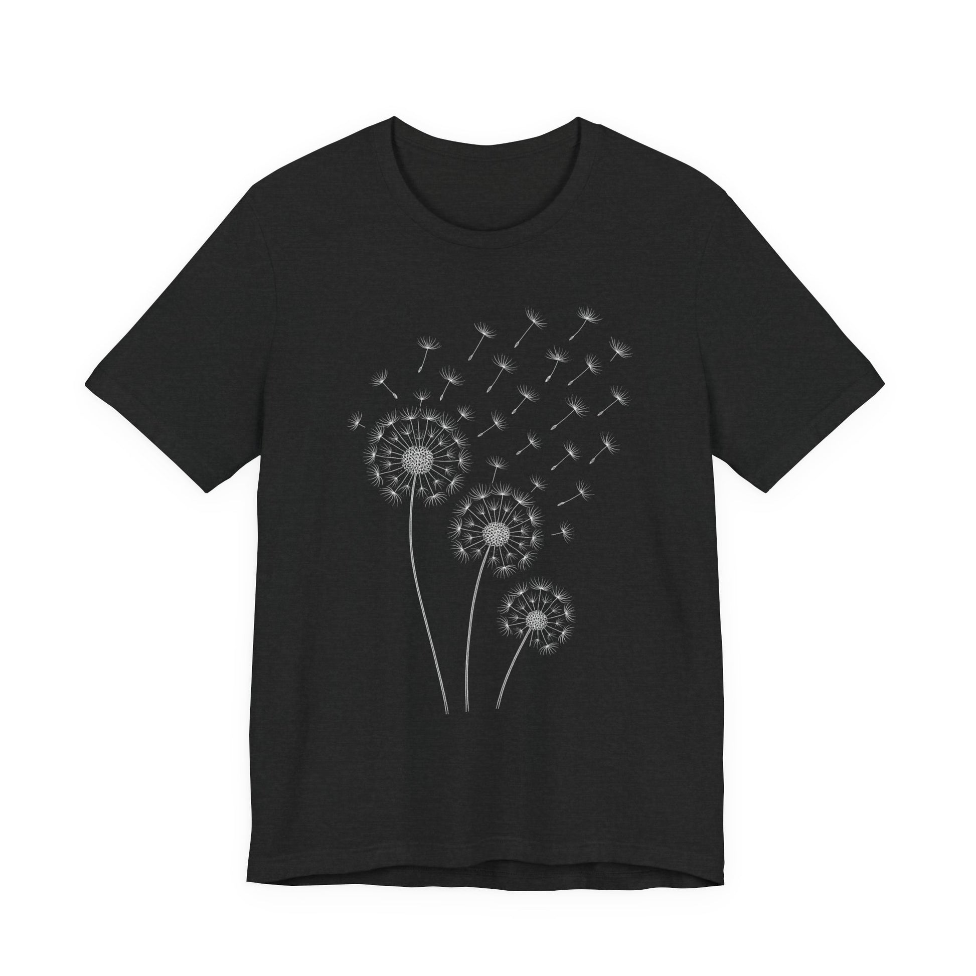 A beautiful tee featuring a delicate trio of dandelions with blowing seeds in the wind. This whimsical design provides a sense of tranquility and nature-inspired charm. Perfect for nature lovers, garden enthusiasts, and those who appreciate the beauty of simplicity. Ideal for casual wear, outdoor activities, or as a thoughtful gift for birthdays, Mother's Day, or any nature-themed occasion.