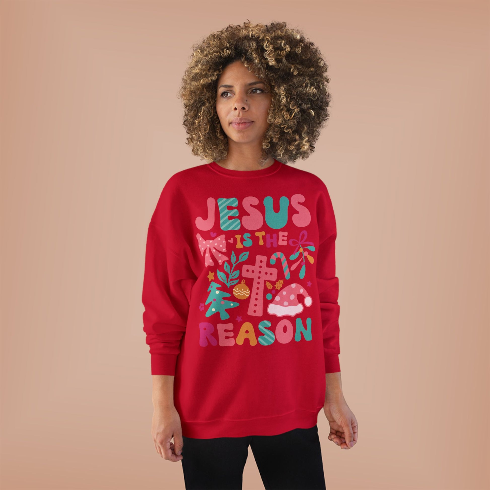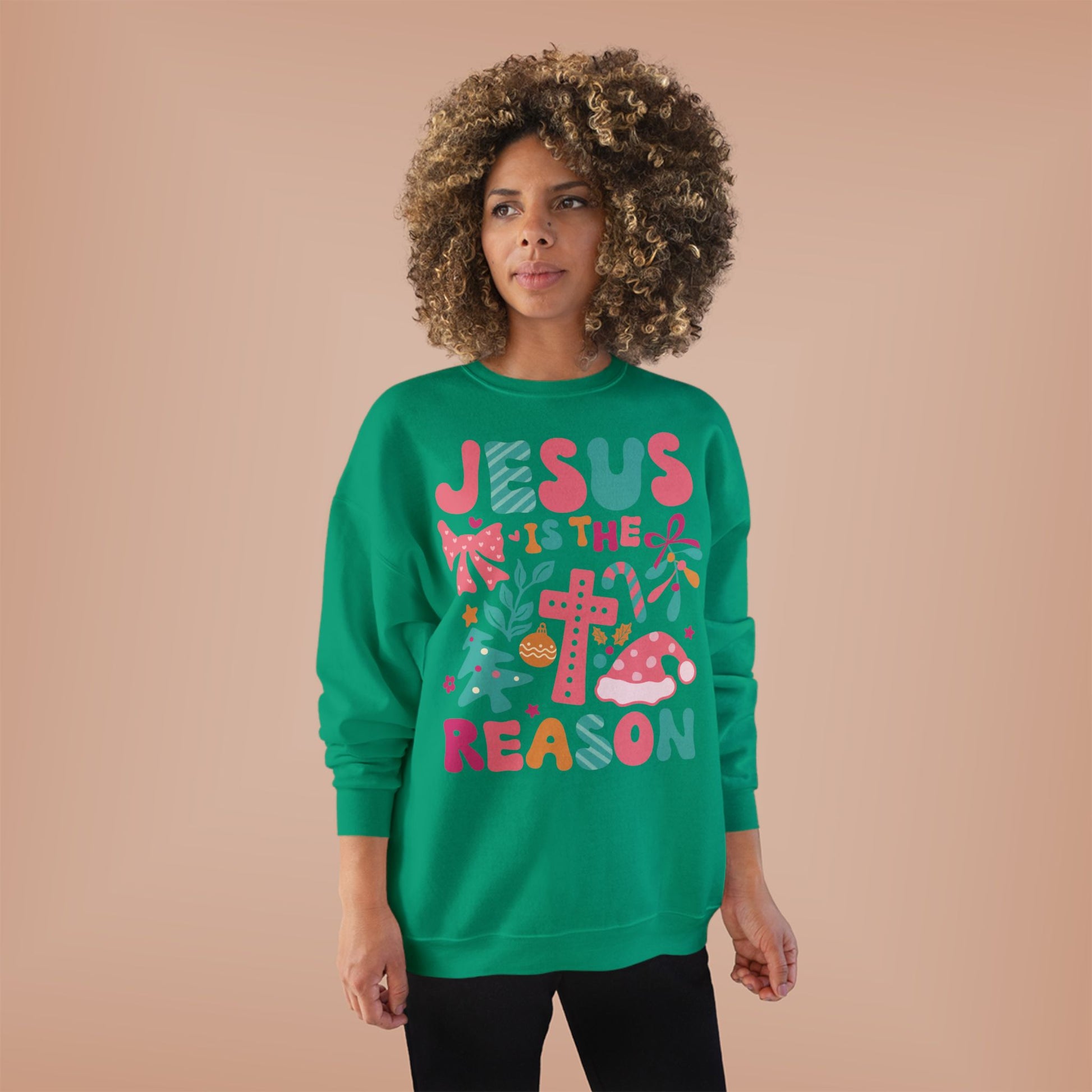 This vibrant colored sweatshirt reveals the 'Reason' behind the holiday season, giving off a festive and cheerful vibe. Perfect for anyone looking to celebrate the holiday season in style.