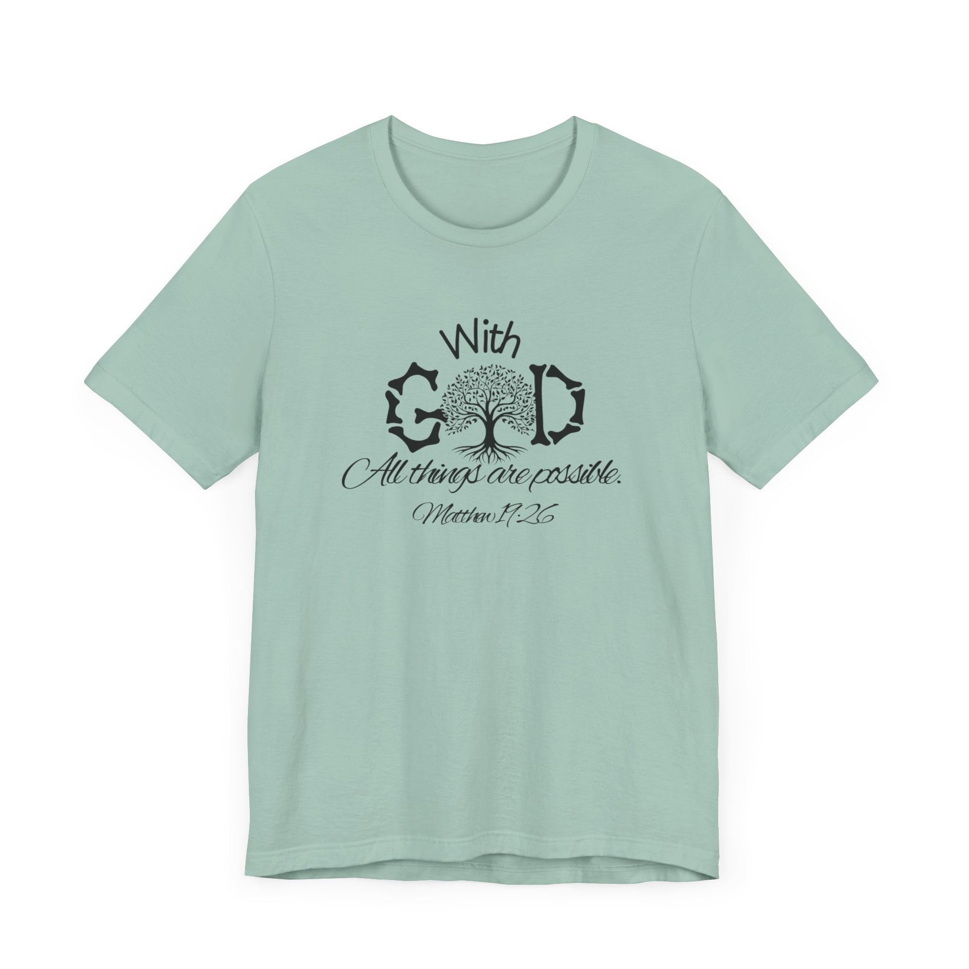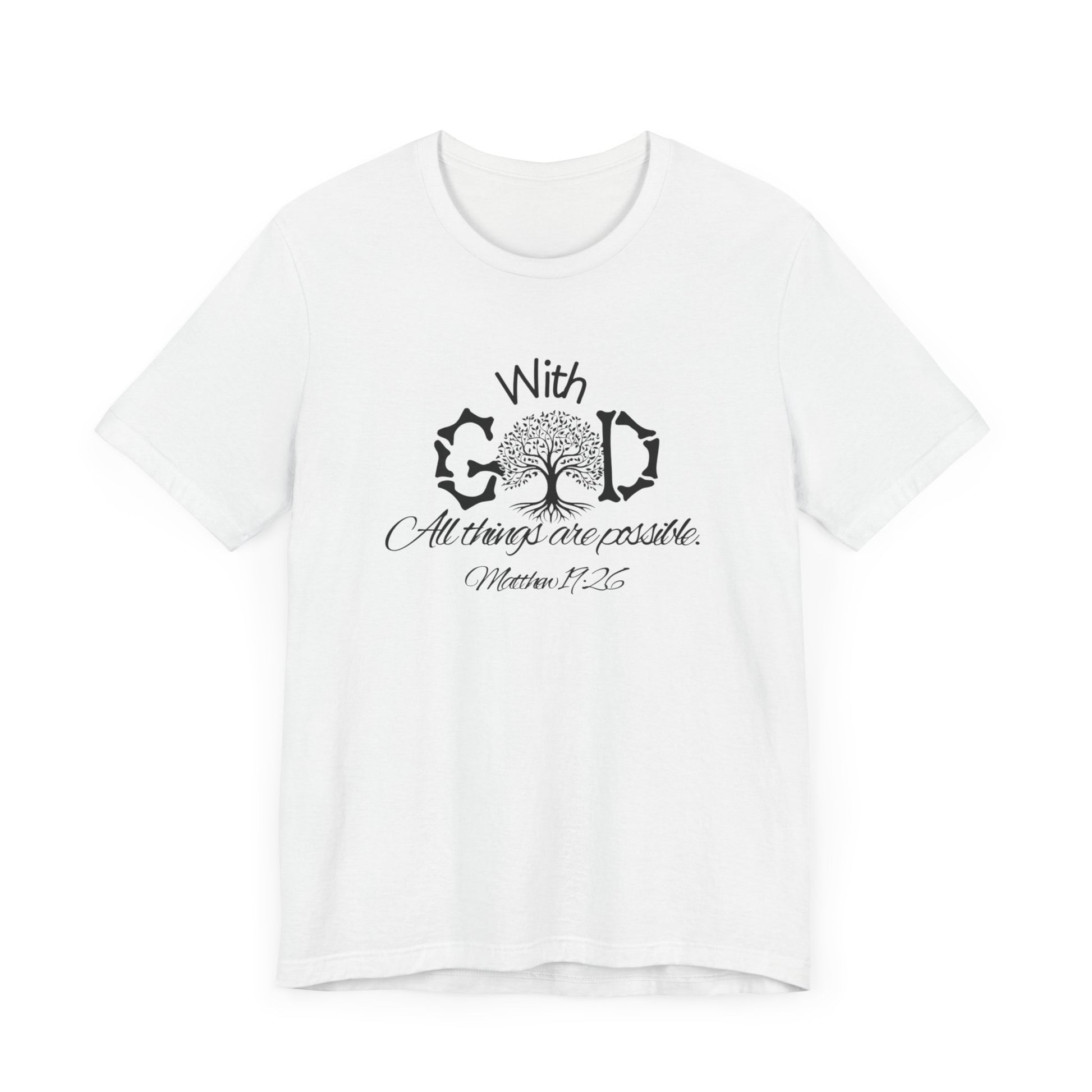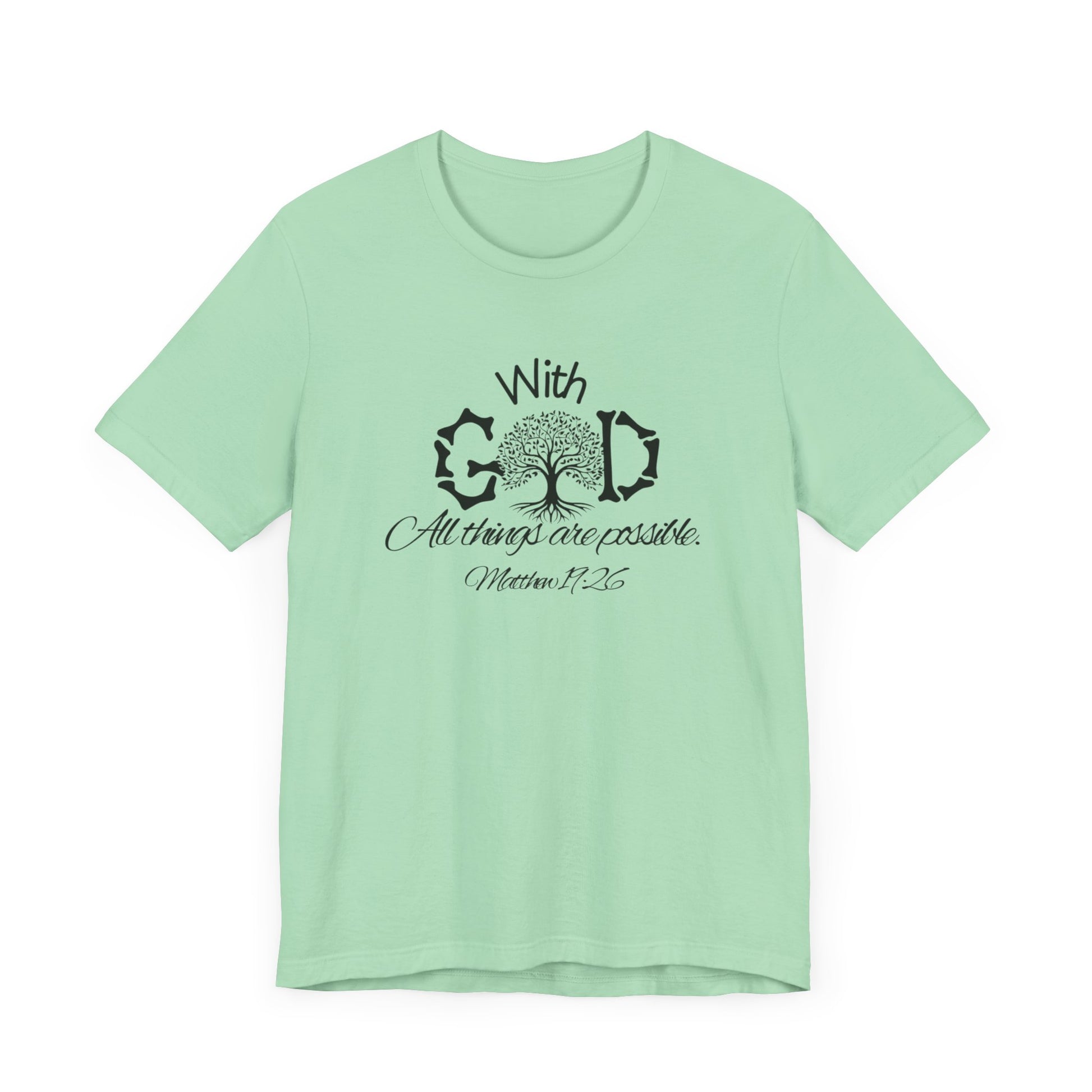 With God All Things Are Possble: Hopeful Tree Scripture T-shirt
