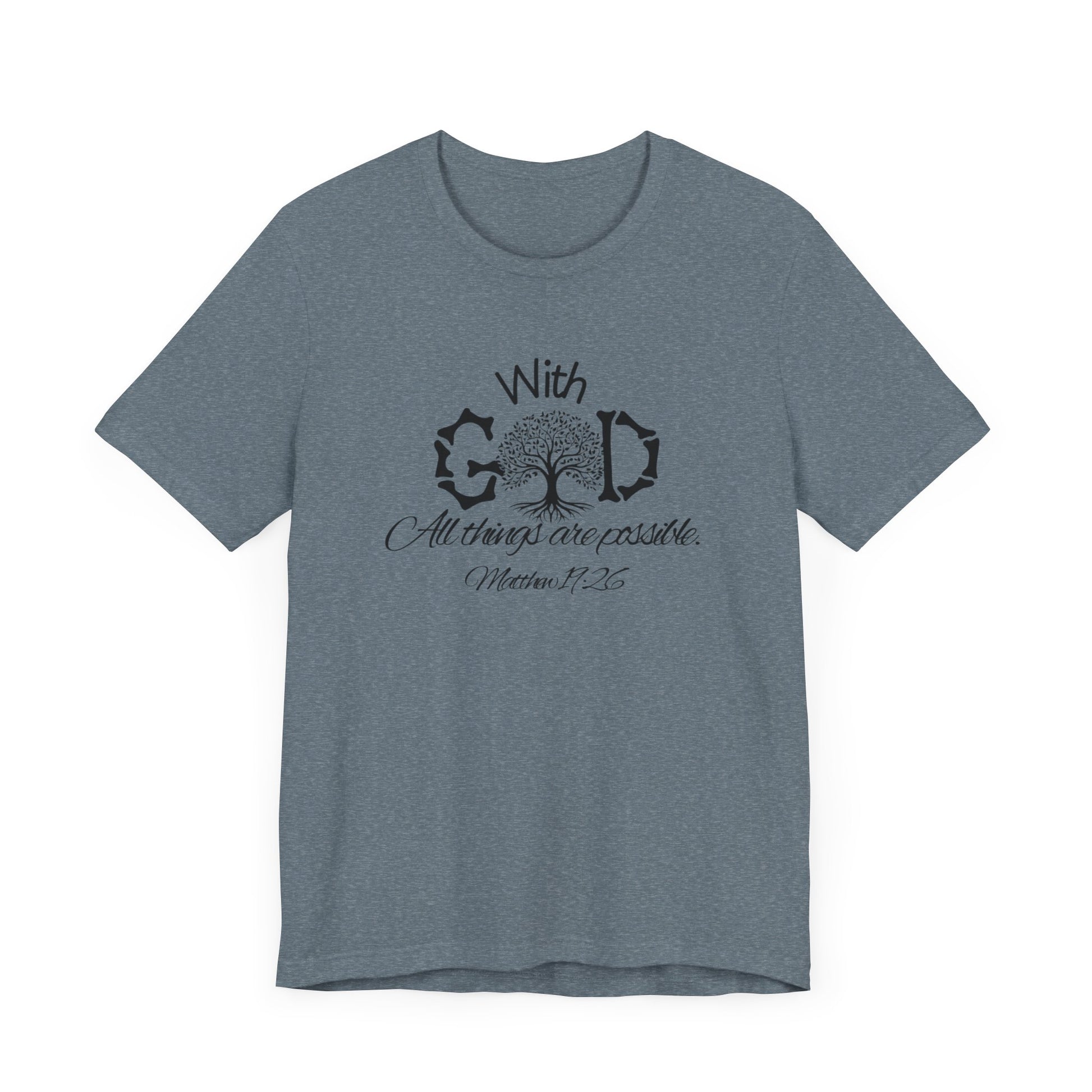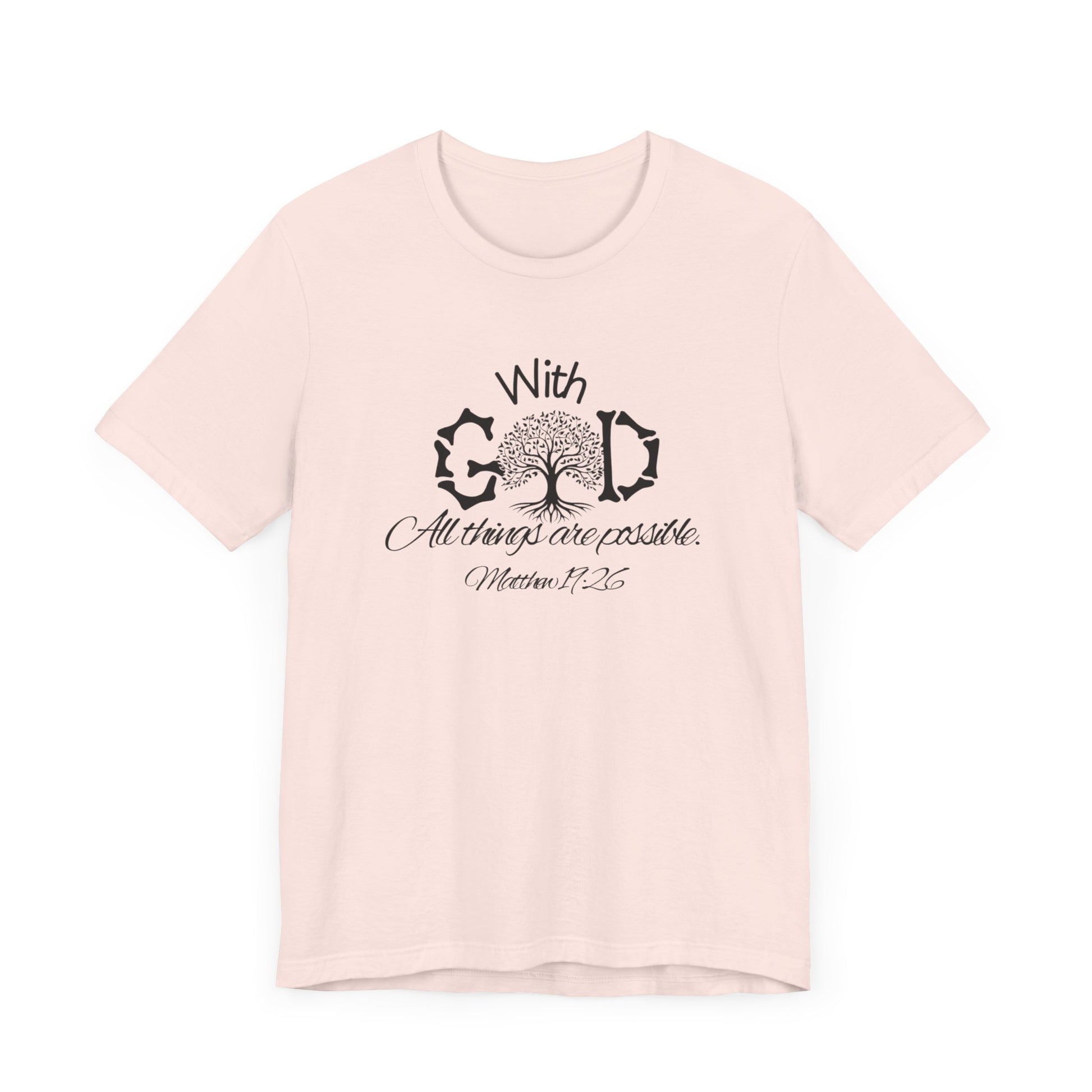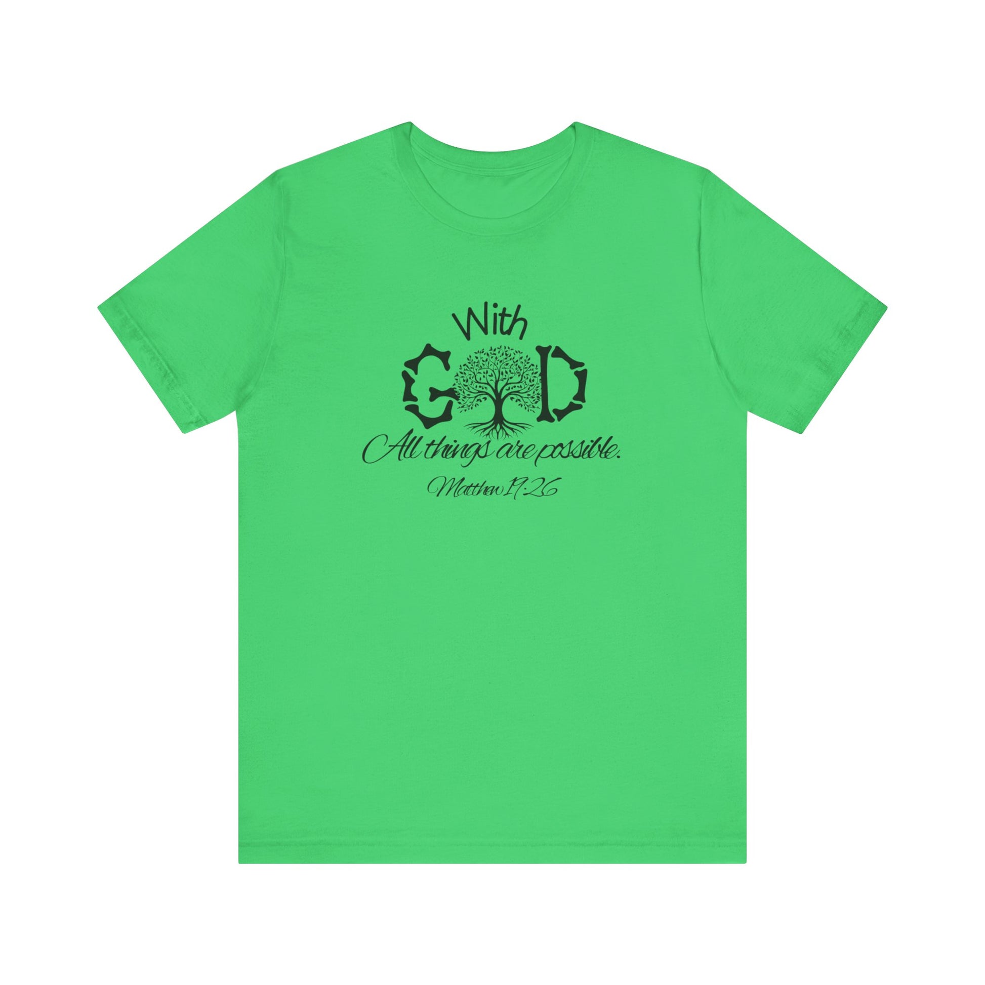 With God All Things Are Possble: Hopeful Tree Scripture T-shirt