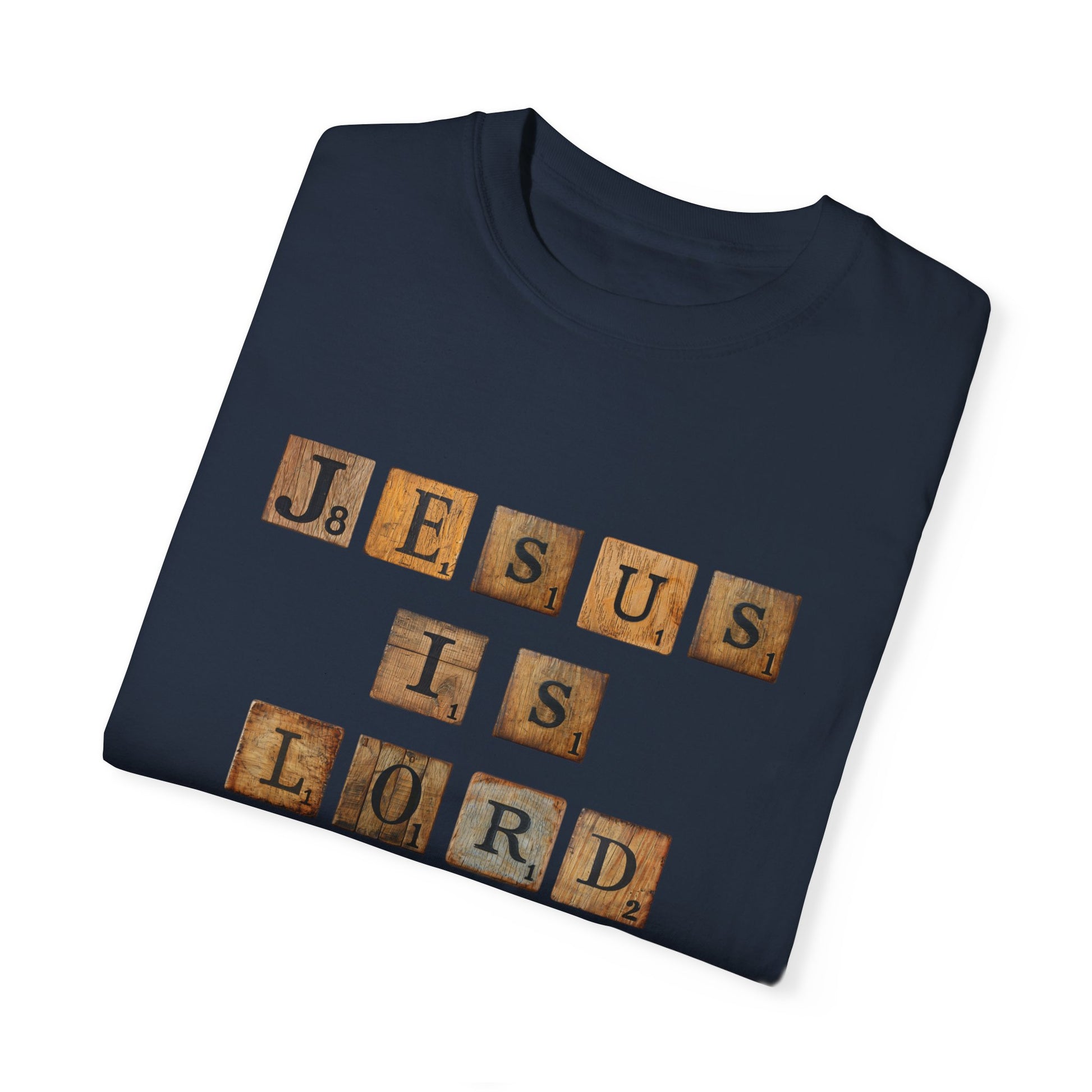 Jesus is Lord Scrabble Tile Unisex Garment-Dyed T-shirt