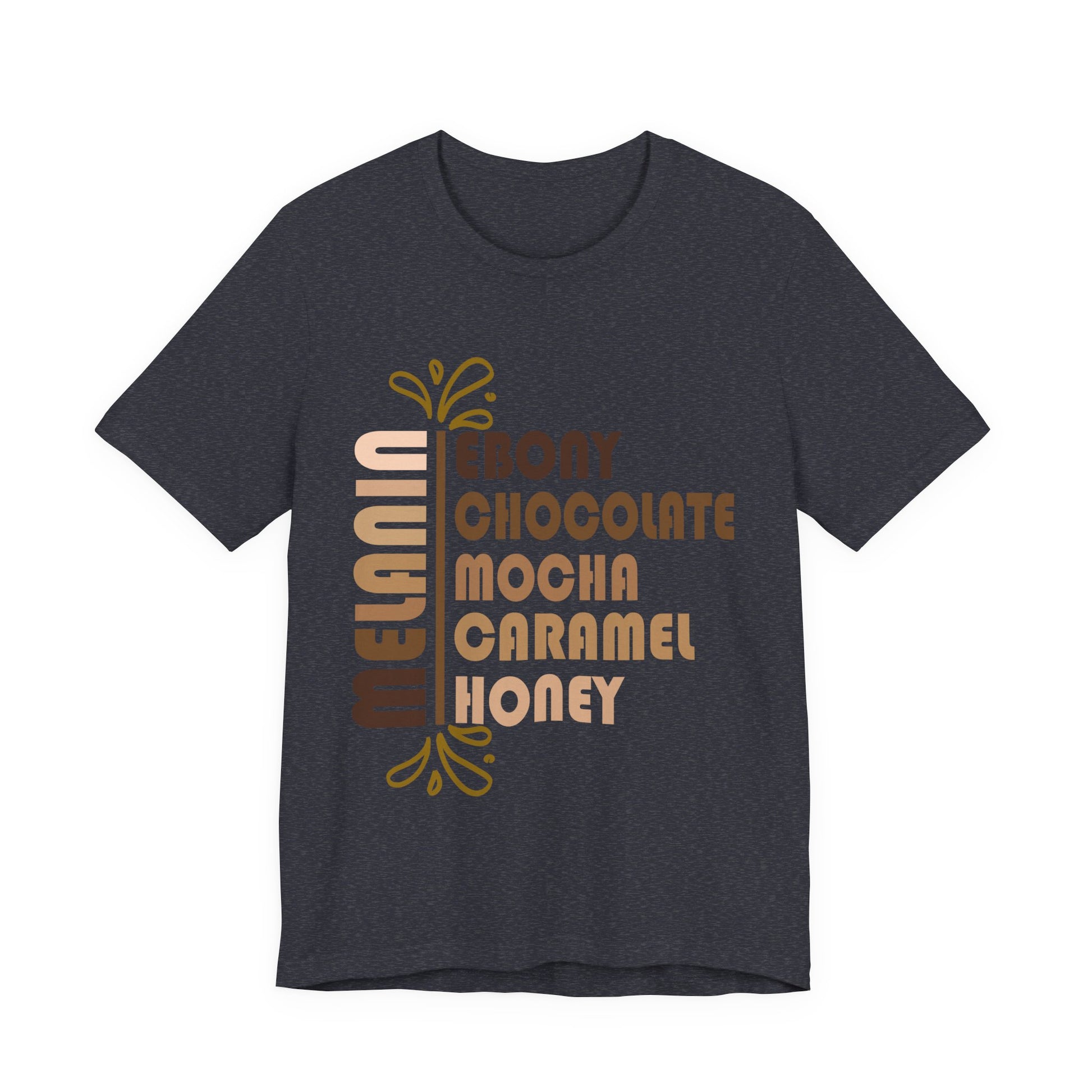 This cool t-shirt calls out some of the beautiful shades of Melanin. Perfect for those who appreciate diversity and want to celebrate their skin tone. Ideal for casual outings, cultural events, and pride celebrations.