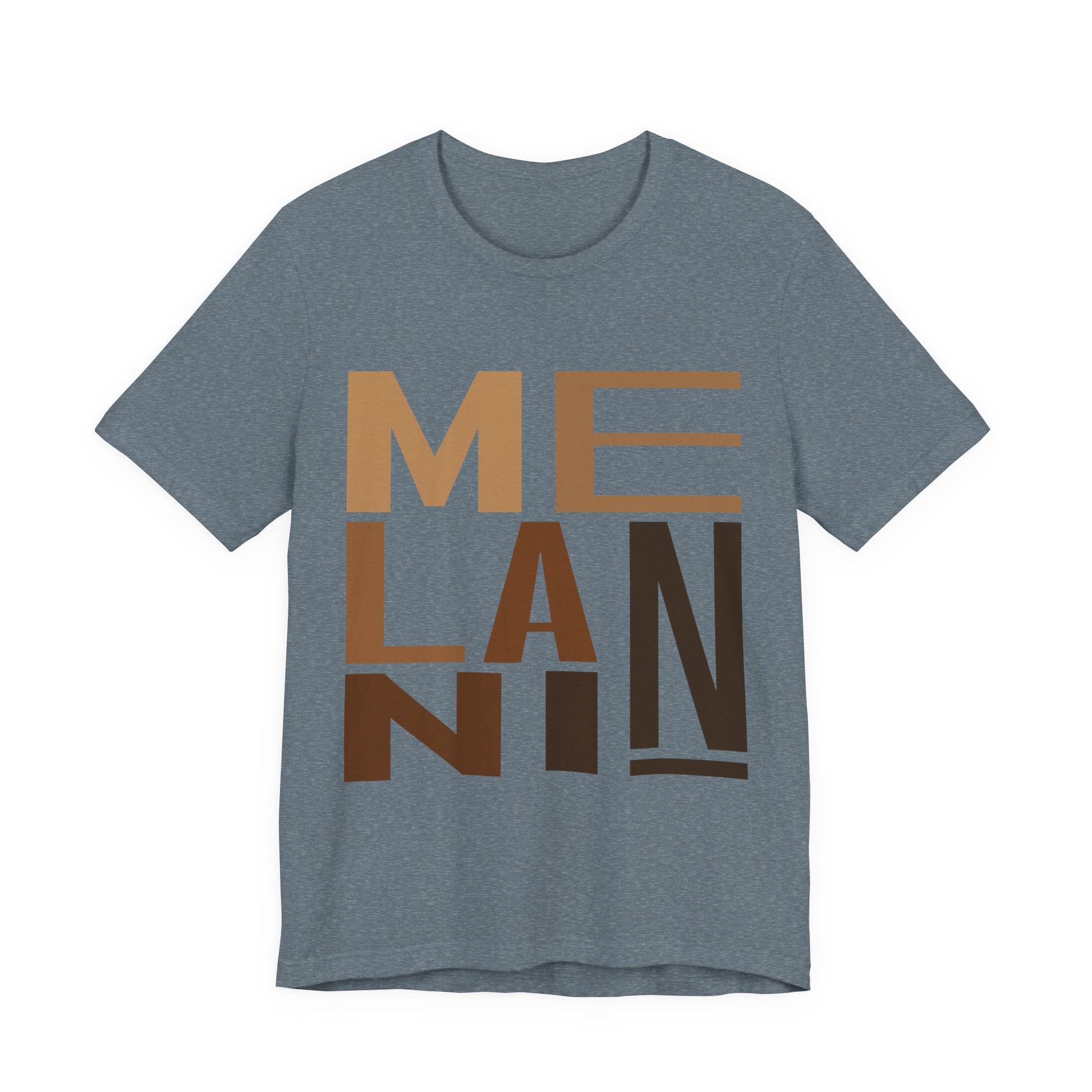 This T-Shirt features a cool text art design that celebrates 'Melanin'. It's perfect for those who embrace their skin color and want to showcase their pride. Ideal for casual wear, this tee is made with lightweight, breathable cotton, making it suitable for everyday activities. It's a great addition to your wardrobe for cultural events, Black History Month, or any day you want to make a statement.