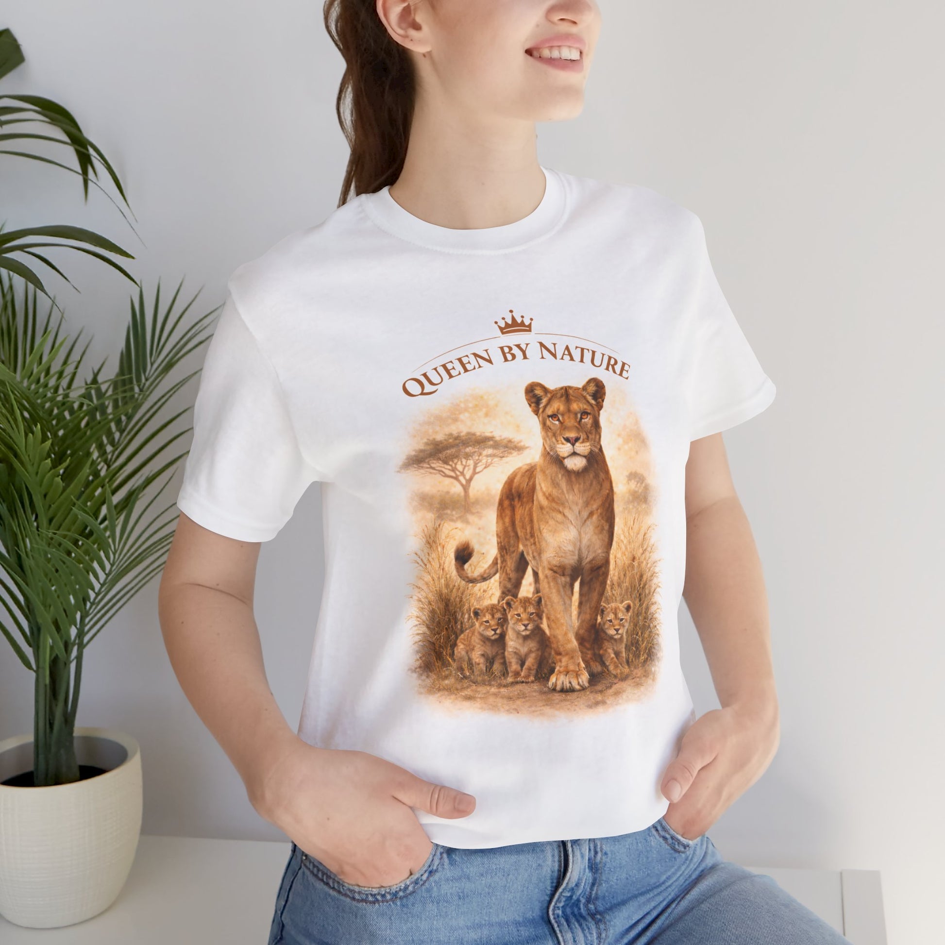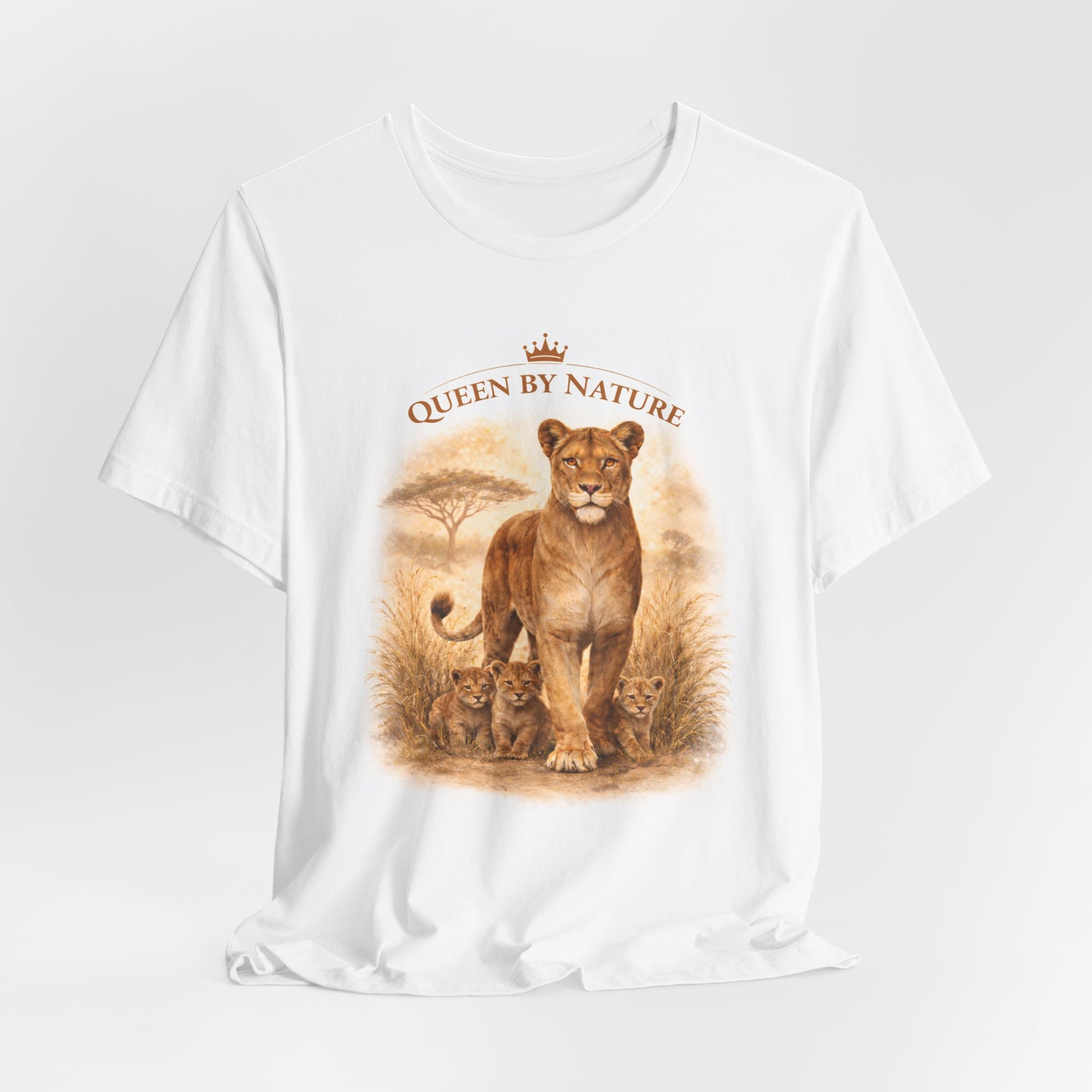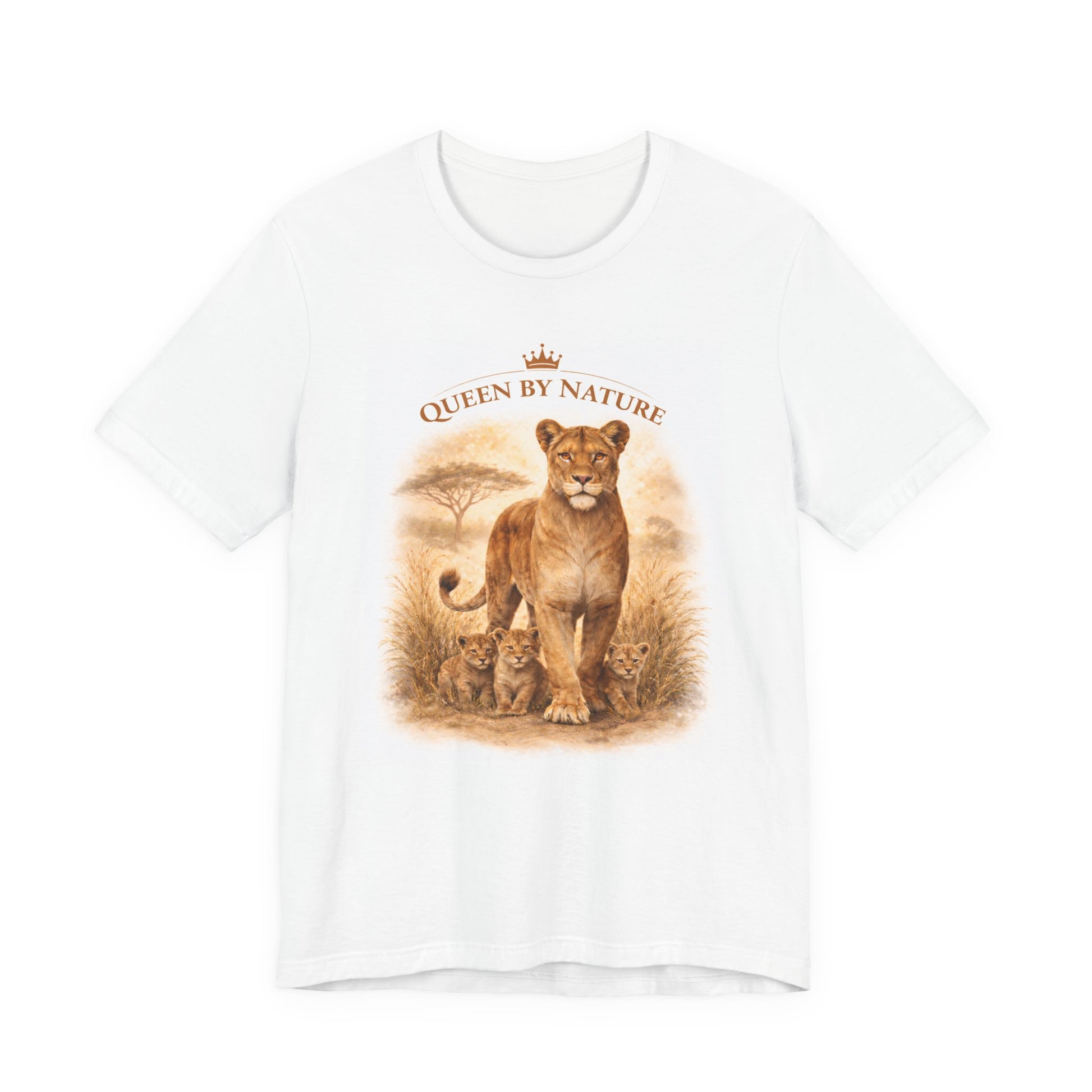 She doesn’t need to shout — she moves through the room with steady authority. This tee carries that quiet strength: a warm-toned lioness leading her cubs, printed to feel like a soft painting on the fabric. Light and breathable, it drapes easily and keeps its shape, so it slips into mornings with coffee, school runs, or low-key evenings where presence matters more than volume. For women who protect, guide, and lead with calm confidence, this shirt is a subtle statement of legacy and resilience — wearable art that honors that steady power.