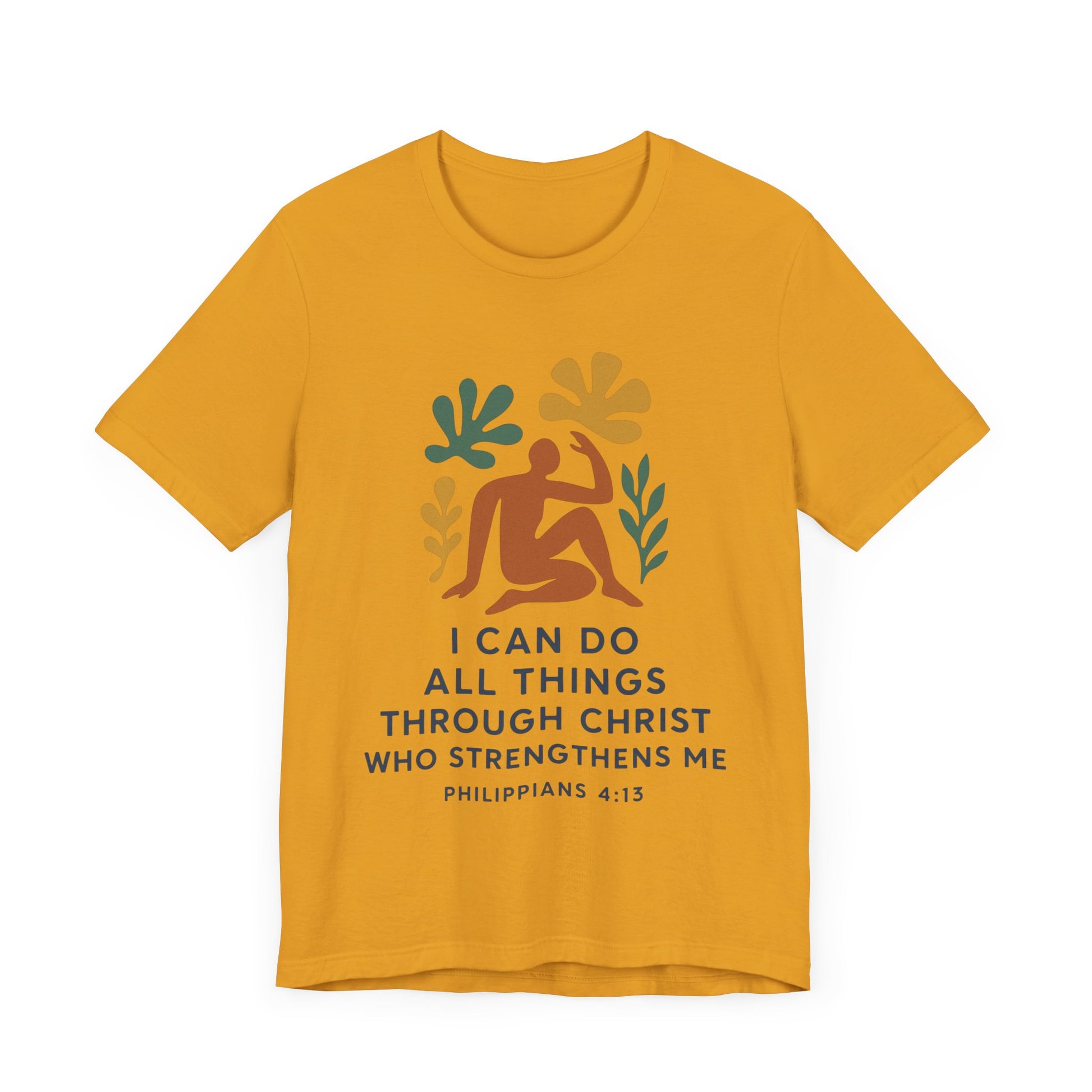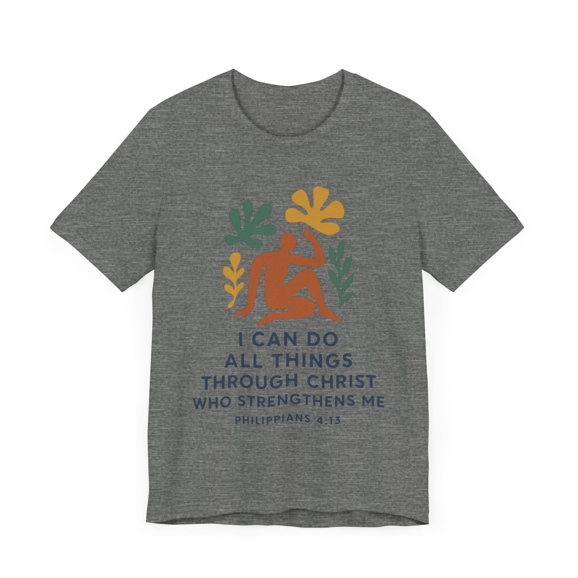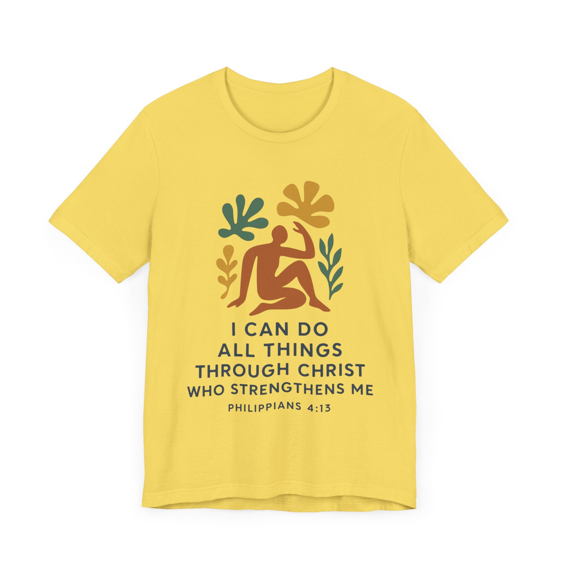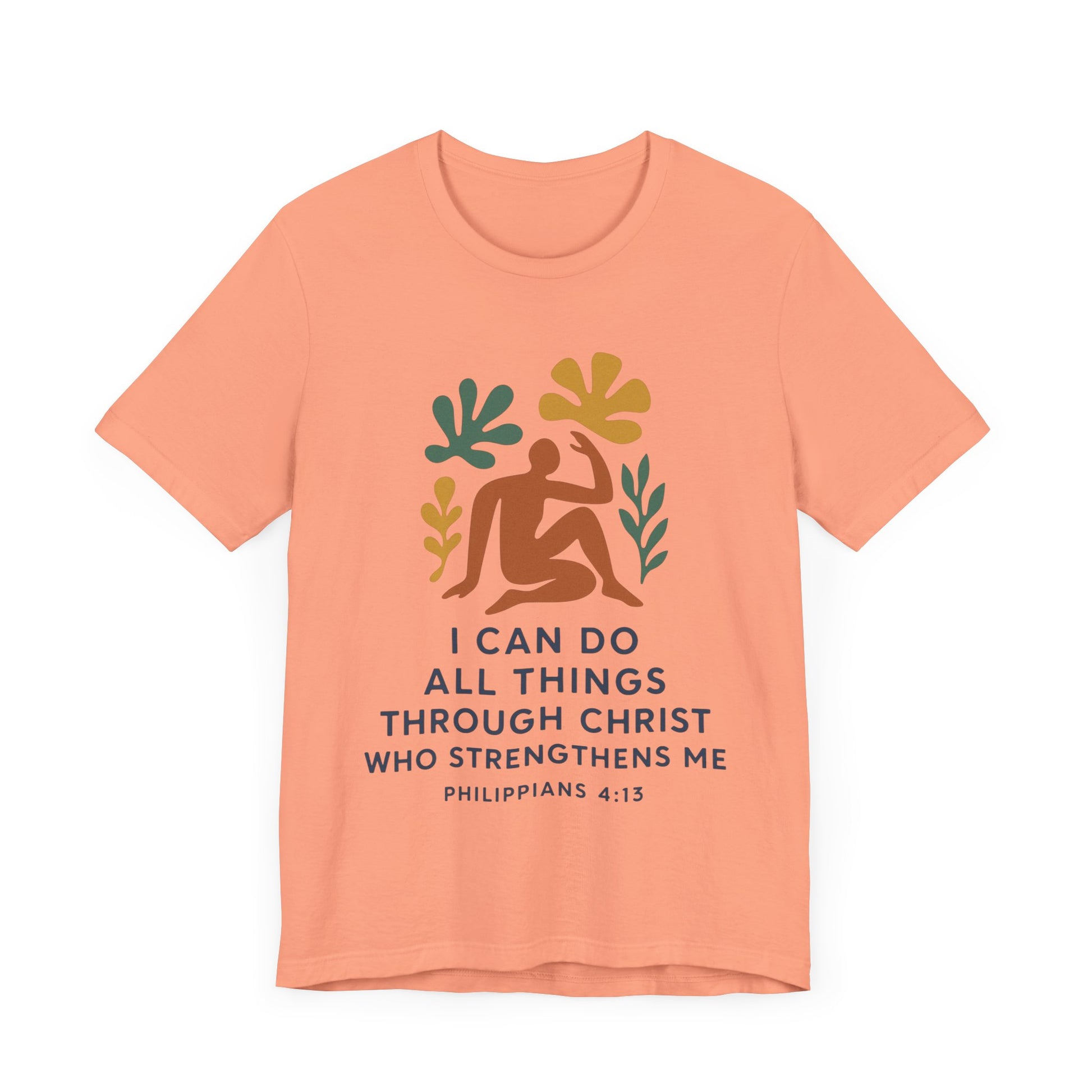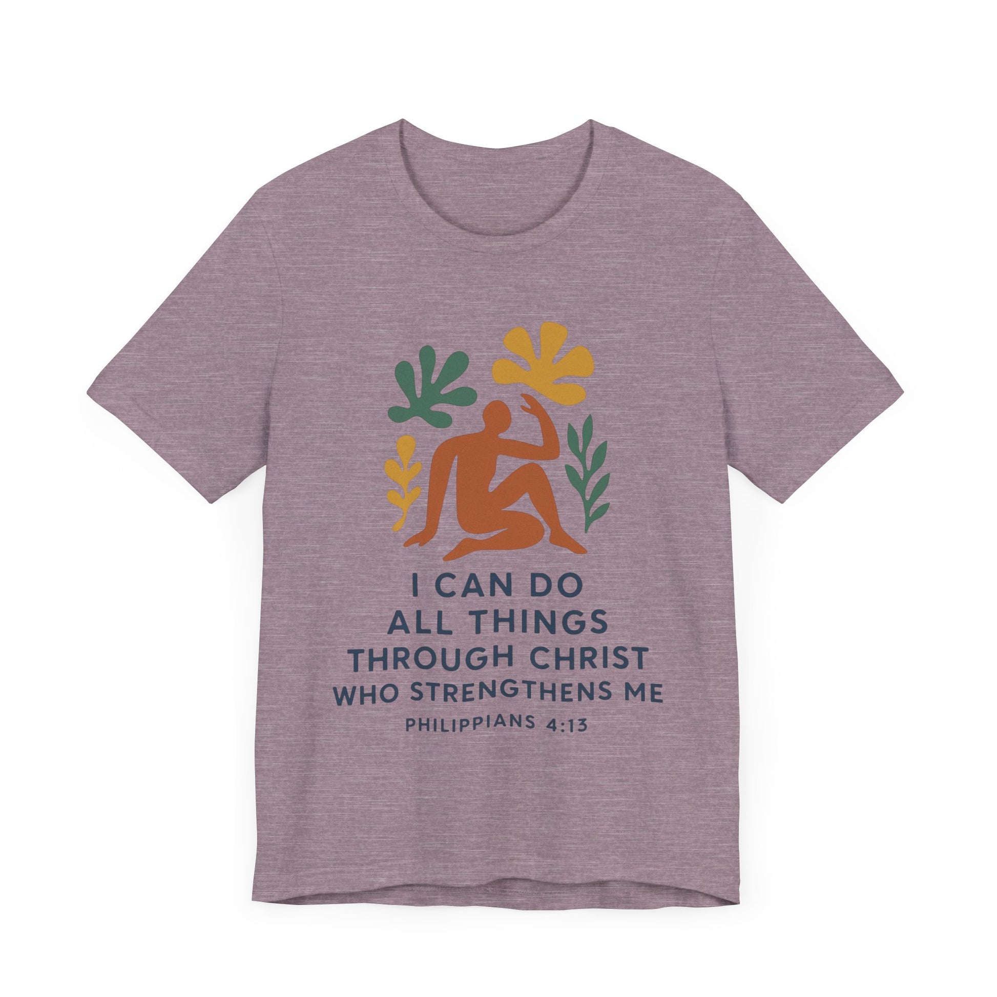 This Matisse style Tee showcases the wisdom of Philippians 4:13, giving off a tranquil and inspirational vibe. It is perfect for casual wear, layering, or as a statement piece for a semi-formal setting. Relevant to Christians, those seeking motivational apparel, or anyone looking for a stylish Tee with a meaningful message. Ideal for occasions like Easter, Christmas, birthdays, and everyday wear.